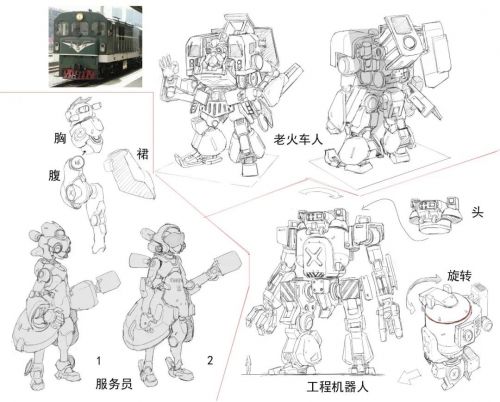 老動車人+服務員+工程機器人概念設計稿