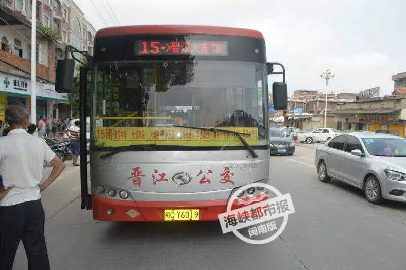 今天14:15 左右,晉江西園街道辦事處外,2個女孩乘坐晉江15路公交車到達“西園辦事處”站,從前門下車。