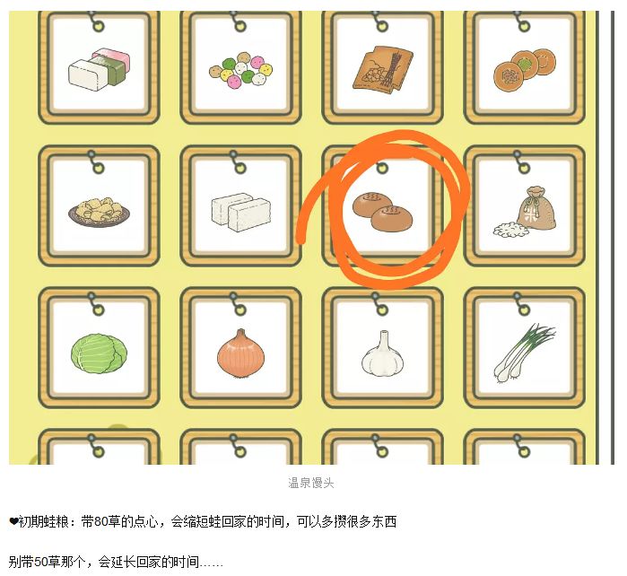 ?蛙蛙的背包(藍(lán)色方格)和桌子(黃色方格)如果都空著,蛙可能會(huì)離家出走,給它把桌子(黃色方格)放好食物,會(huì)自己回來(lái)的