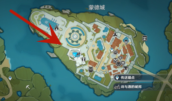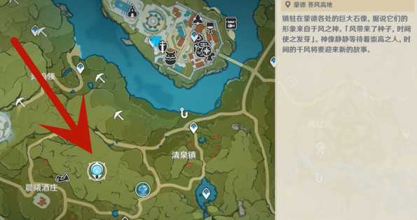 1、玩家首先前往蒙德城圖中標記的傳送點。