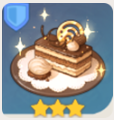 描述:長條形的小蛋糕。據說這是很久很久以前某位糕點師以楓丹民眾對水神大人的熱愛為靈感,創作而成。堆疊而起的多重層次、考驗廚藝的制作工序,無一不證明著水神大人的影響力。