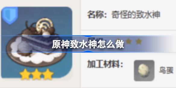 原神有很多食物可以制作,可以為旅行者提供一些生命回復,體力恢復以及其他增益效果,其中的致水神大家知道怎么做嗎?下面為大家帶來的具體內容,感興趣的玩家們千萬不要錯過哦!