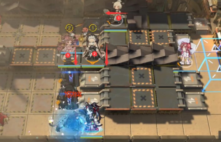 繼續(xù)部署伊芙利特(向左)→ 夜鶯(向下)→ 艾雅法拉(向下),隨后等棘刺第二次開完技能即可掛機。