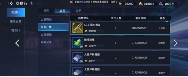 3、需要注意的是出售裝備后是由冷卻時間的,玩家需要等待冷卻時間過后才可以繼續(xù)上架。