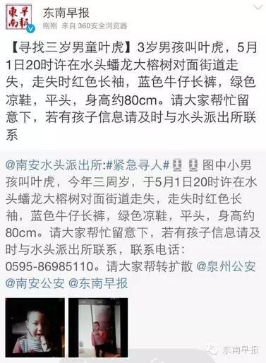 請大家幫忙留意下,若有孩子信息請及時與水頭派出所聯系。