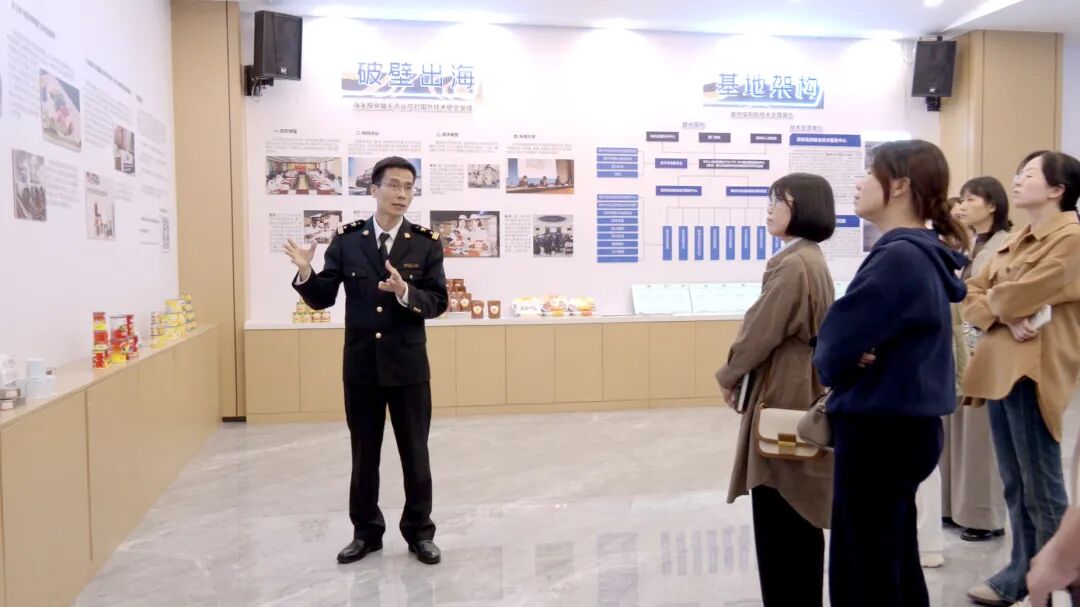 理論宣講結束后,參會企業代表共同參觀了出口罐頭食品技貿評議基地的展廳,展廳內通過圖文展板、實物展示等多種形式,集中呈現了產業格局、發展歷程、出口罐頭遭遇國外技術壁壘典型案例等內容。