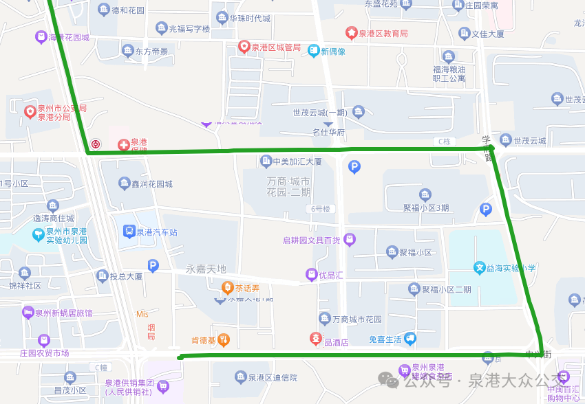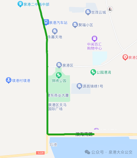 暫不行經:益海小學、泉港一中(學府路)、泉港行政中心(區政府)等公交站點