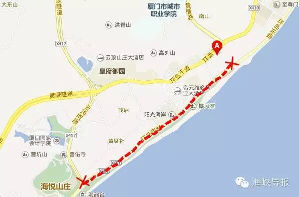 具體措施為:環島南路一國兩制路口至云頂南路路口,雙向禁止機動車通行(含環島南路旅游觀光車道),行經車輛請繞行環島干道。屆時,過往車輛需按現場道路交通指示標志通行,服從現場民警和管理人員的指揮疏導,行人不得翻越警戒線、護欄、腳手架、水馬等安全設施。